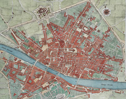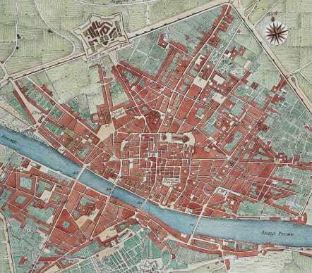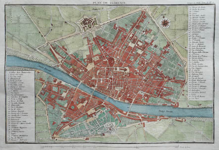 Rare and detailed copper engraved plan of Florence from Voyage en Italie by LALANDE, J. J. DE..