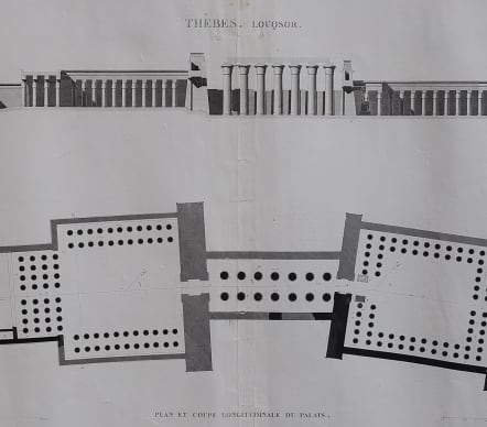 THEBES LOUQSOR PLAN ET COUPE LONGTITUDINALE DE PALAIS