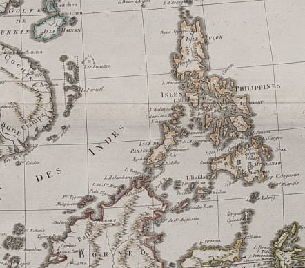 CARTE DES INDES EN DECA ET AU DELA DU GANGE .. BORNEO PHILIPPINES PARTIE ORIENTALE