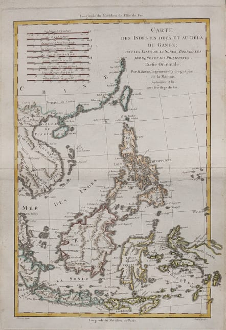 Rigobert Bonne (1727-1795), a prolific French cartographer, was active between about 1760 and 1788, working in the French Hydrographical Office, and appointed as Hydrographer to the French King.