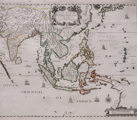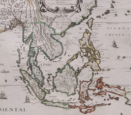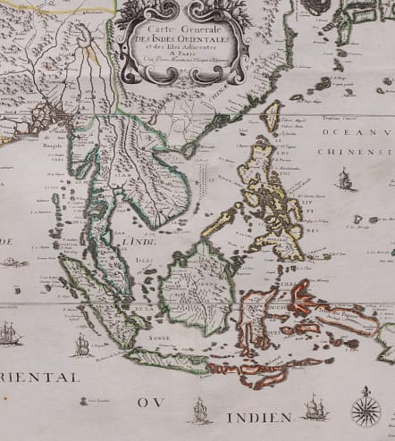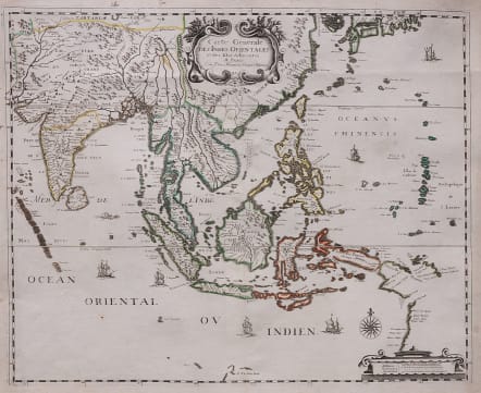Superb and attractive early map of South East Asia from the Maledives to the South of Japan with parts of the northern Australian coast, published by Mariette