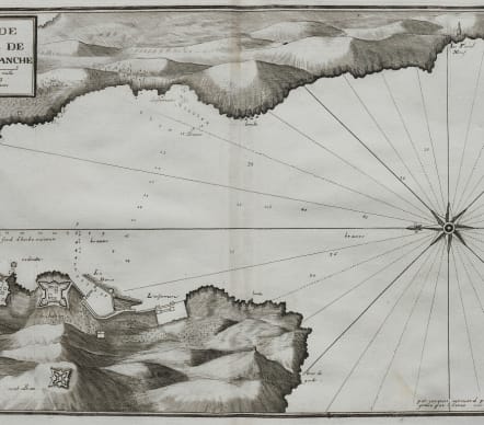 From the rare chart book by Jacques Ayrouard: "Recueil de plusieurs plans des ports et rades et de quelques cartes particulières de la mer Méditerranée"