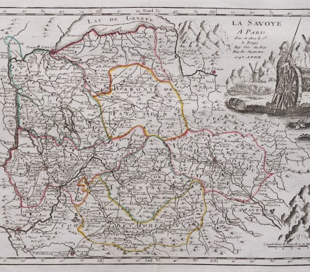 "LA SAVOYE A PARIS Par et chez le Sr le Rouge Ing geog du Roy rue des Augustins 1743 APDR"