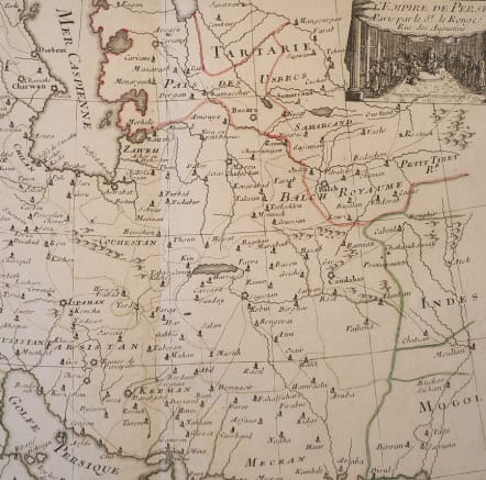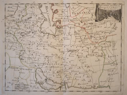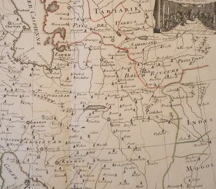 Shows mid eighteenth century borders. Roads/caravan routes.